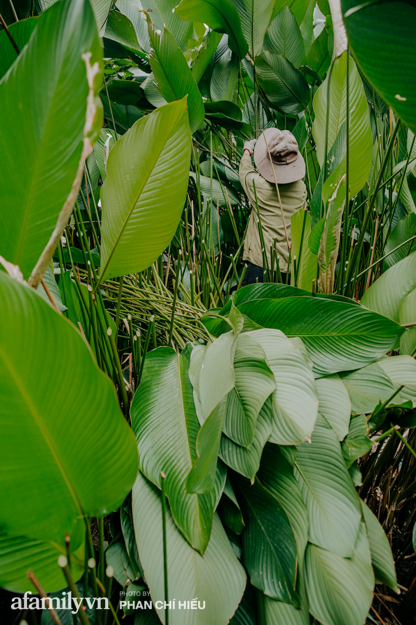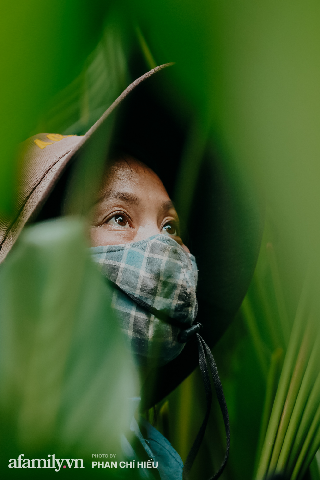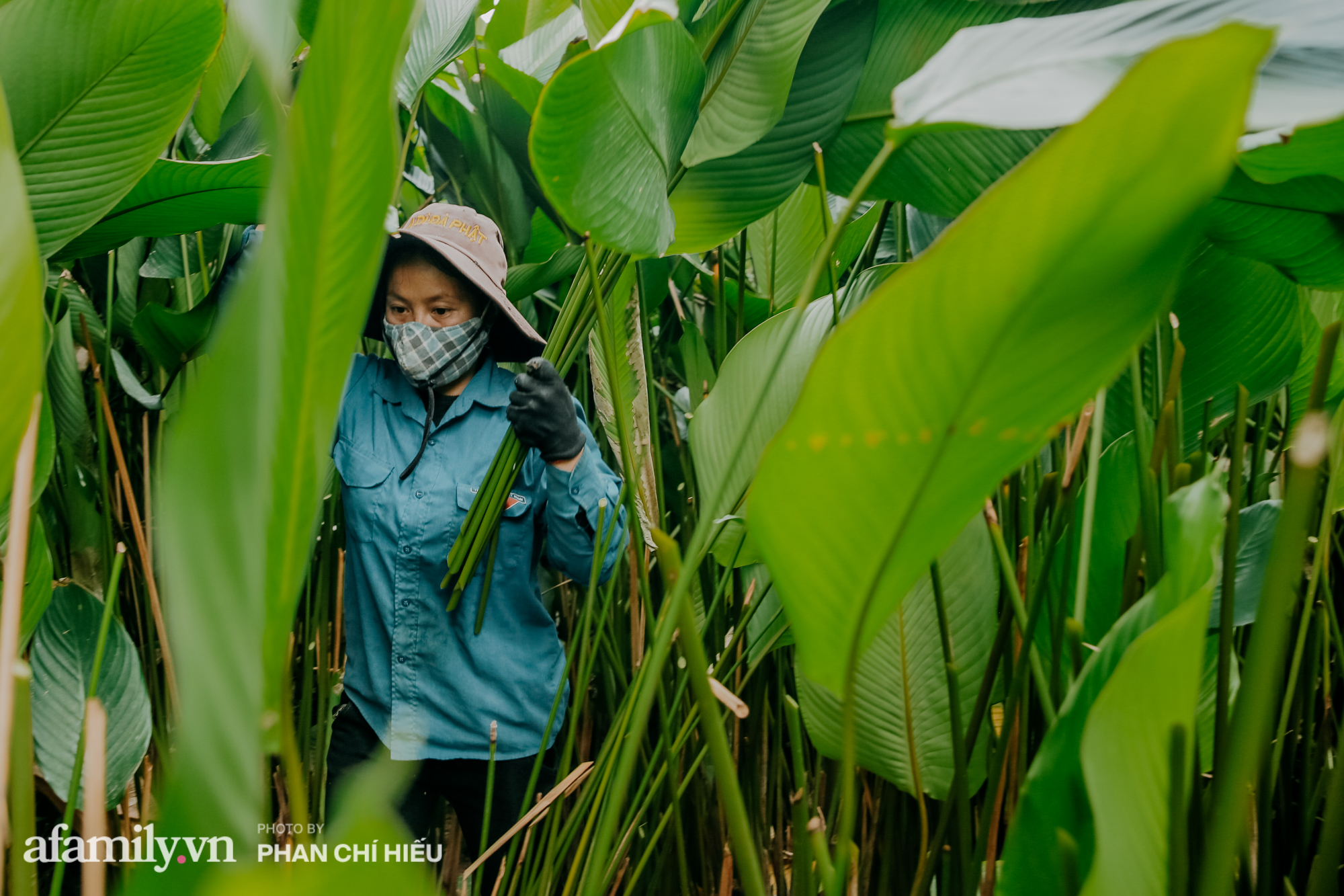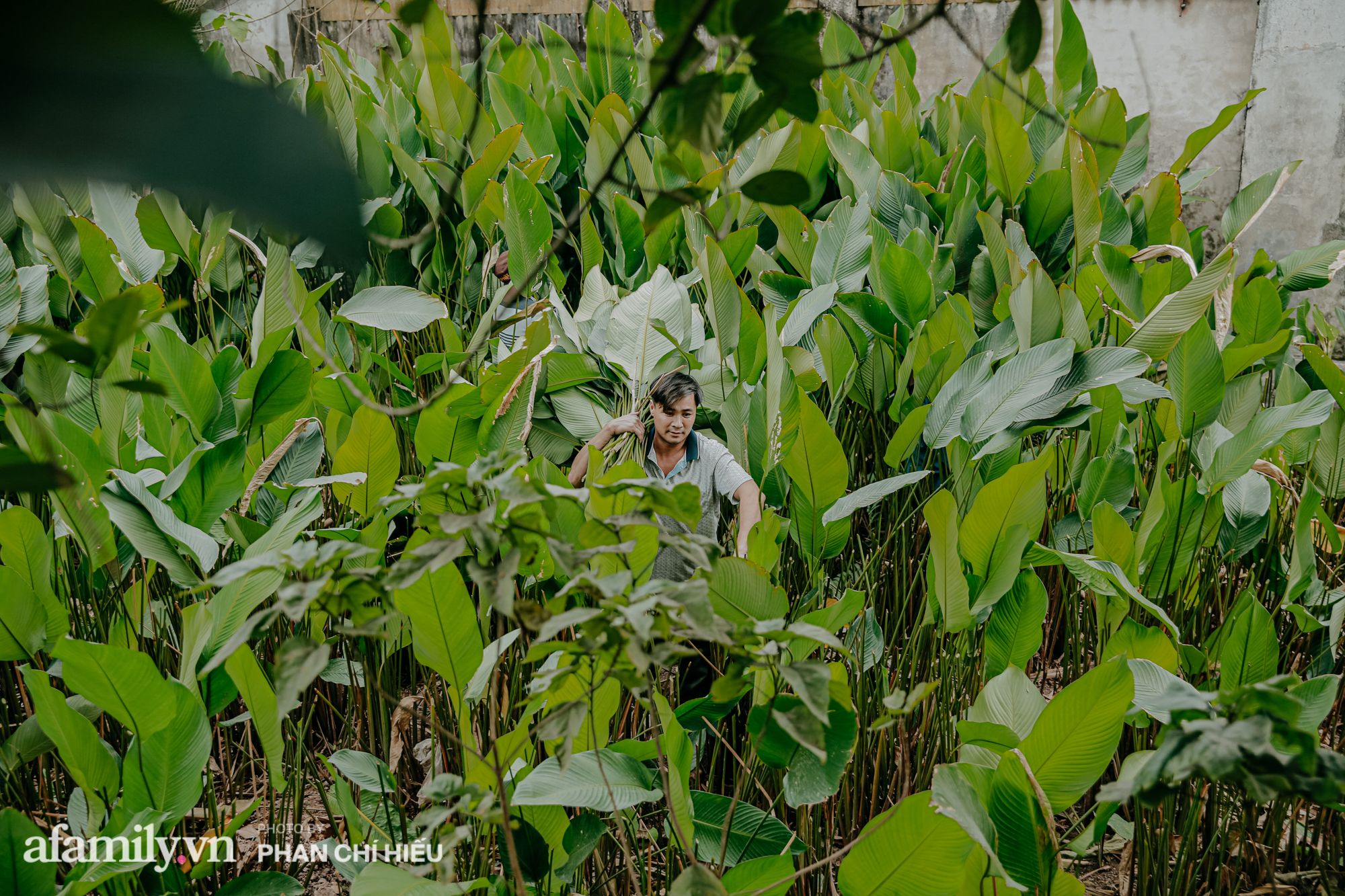 Là một người làm công việc cắt lá được chủ vườn thuê thu hoạch, mỗi ngày chị Liễu bắt đầu công việc từ sáng sớm đến cuối giờ chiều, chị sẽ phải mặc trang phục áo dài, bịt kín để tránh bị ngứa, khi thu hoạch liên tục phải nhìn lên cao để chọn lựa những loại lá đẹp và đều nhất, phần cuống cũng sẽ được cắt dài khoảng 1 mét để lá có thể tươi được khoảng nửa tháng sau khi thu hoạch.