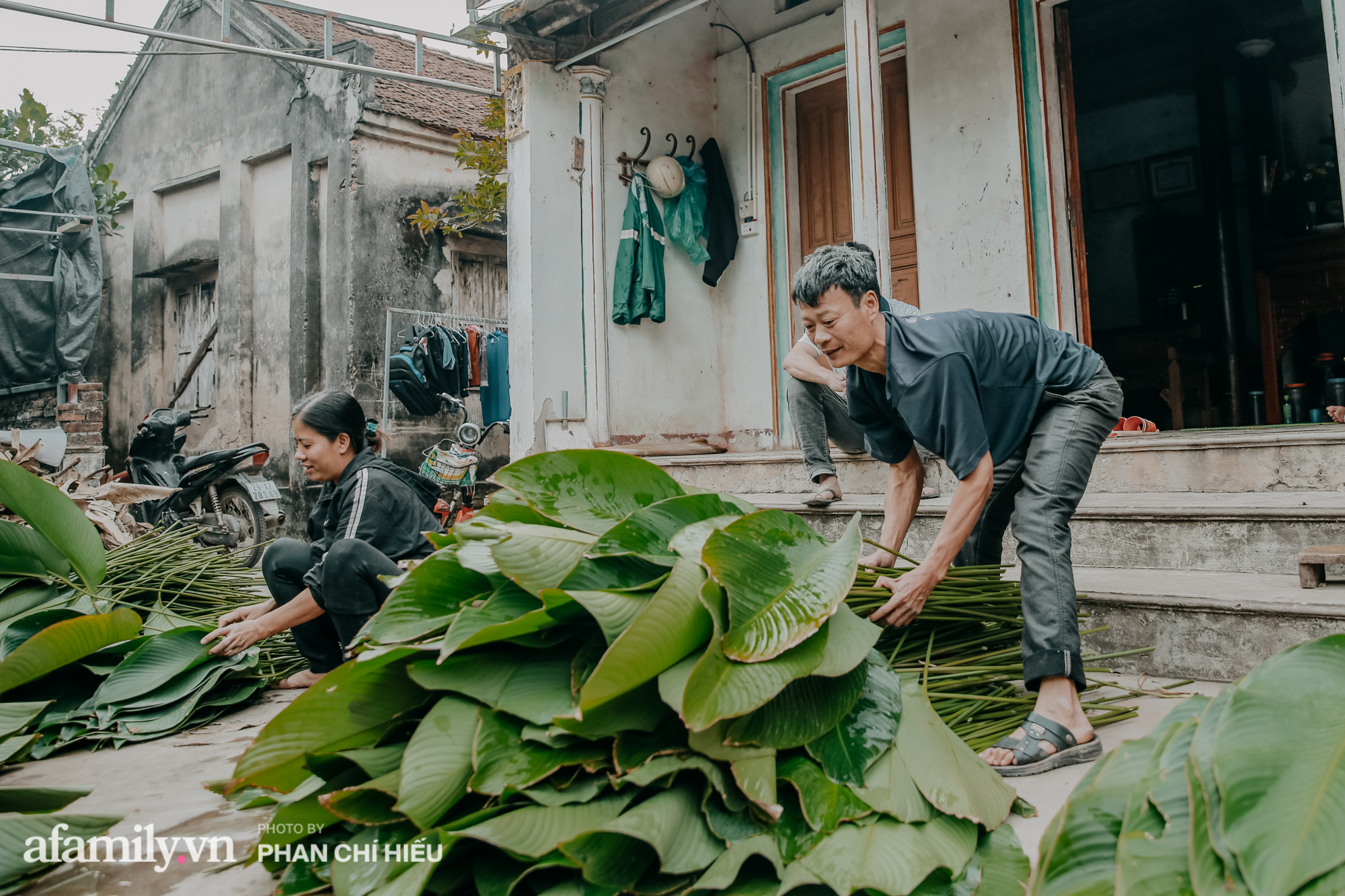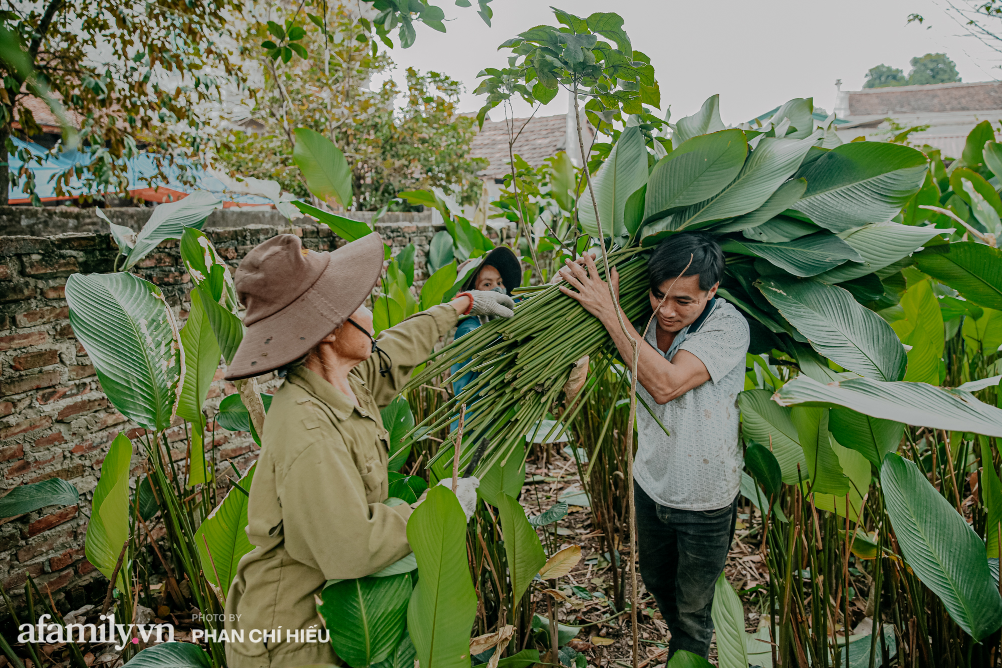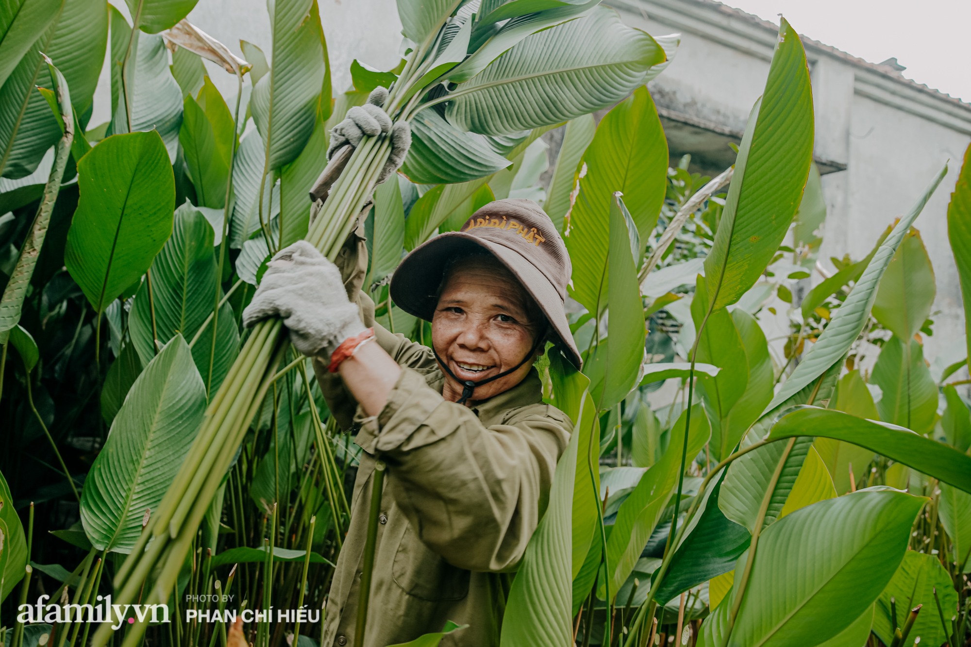 Trong một "rừng" lá dong, những người dân tại làng Tràng Cát liên tục phân chia công việc, mỗi mẫu ruộng sẽ có khoảng 4 người thu hoạch liên tục, người thì cắt, người thì vận chuyển từng bó lá về nhà để phân loại.