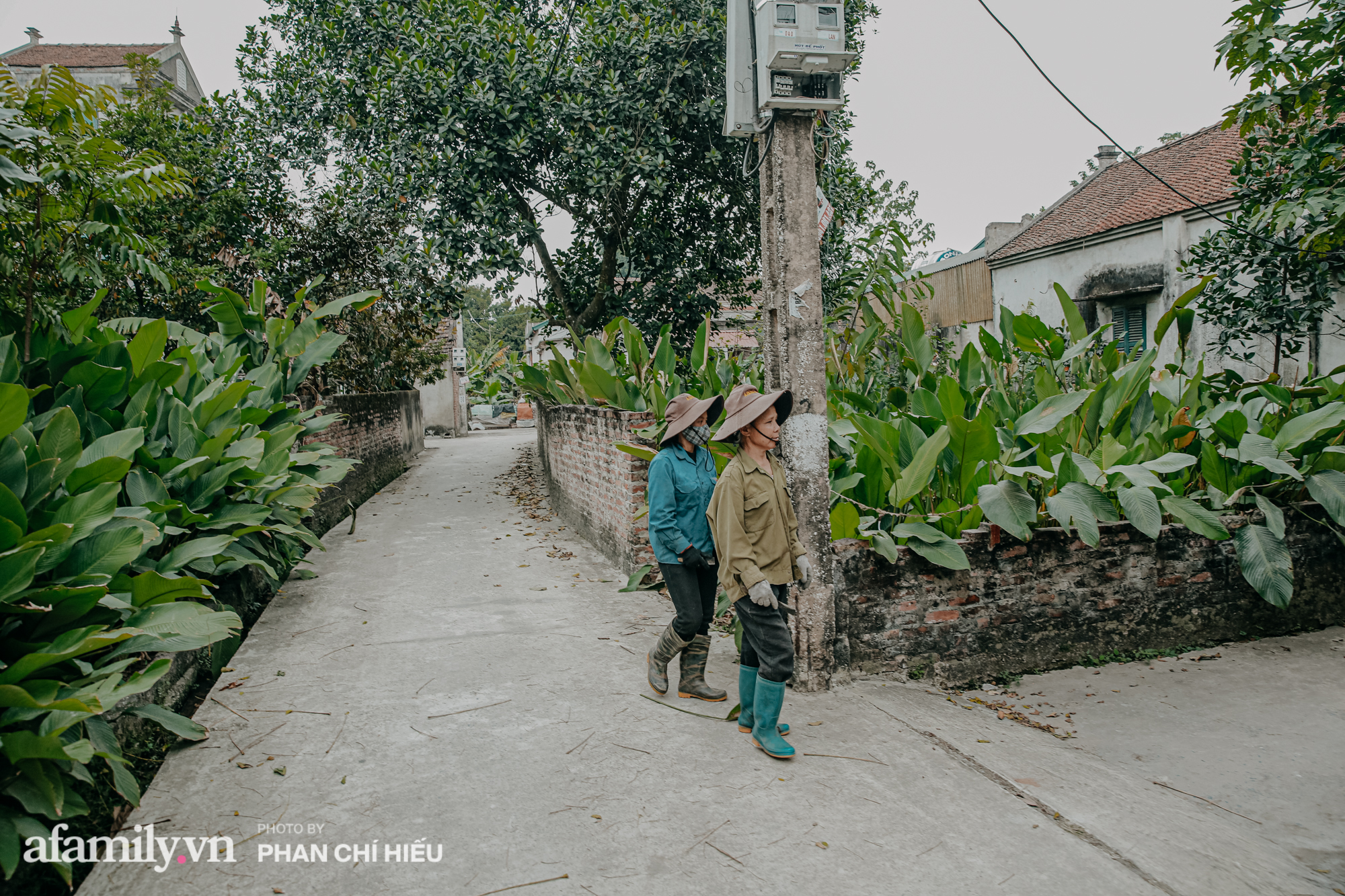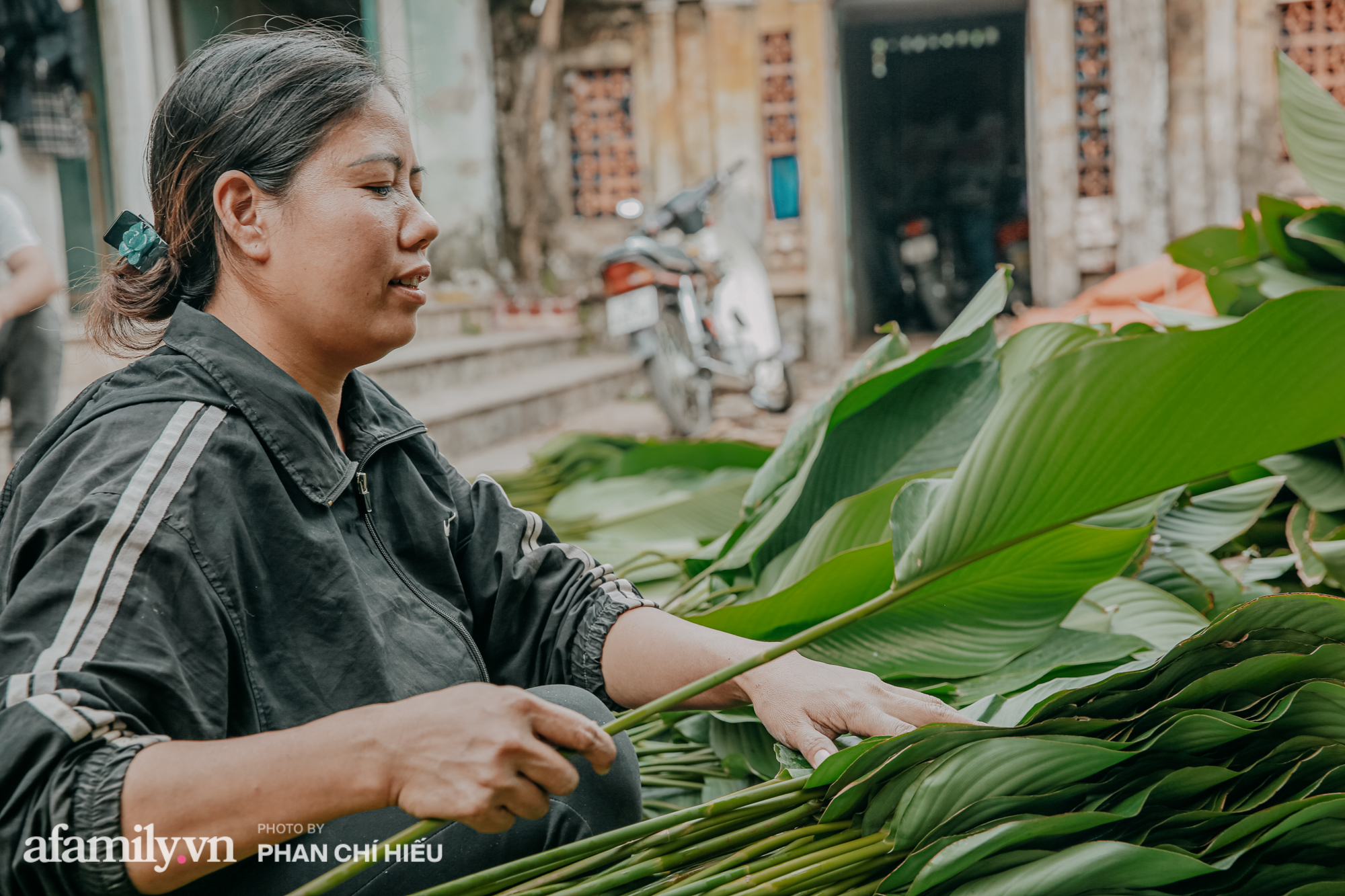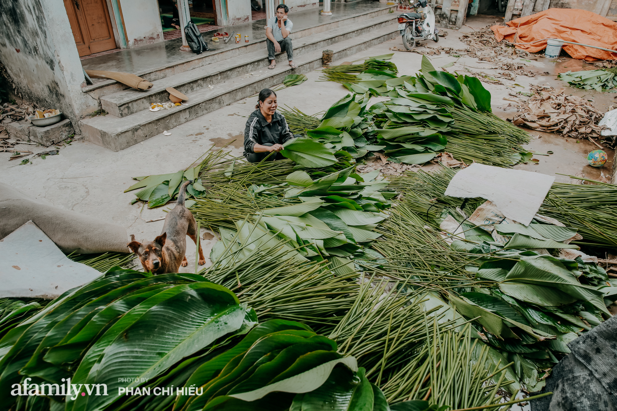 Trong một "rừng" lá dong, những người dân tại làng Tràng Cát liên tục phân chia công việc, mỗi mẫu ruộng sẽ có khoảng 4 người thu hoạch liên tục, người thì cắt, người thì vận chuyển từng bó lá về nhà để phân loại.