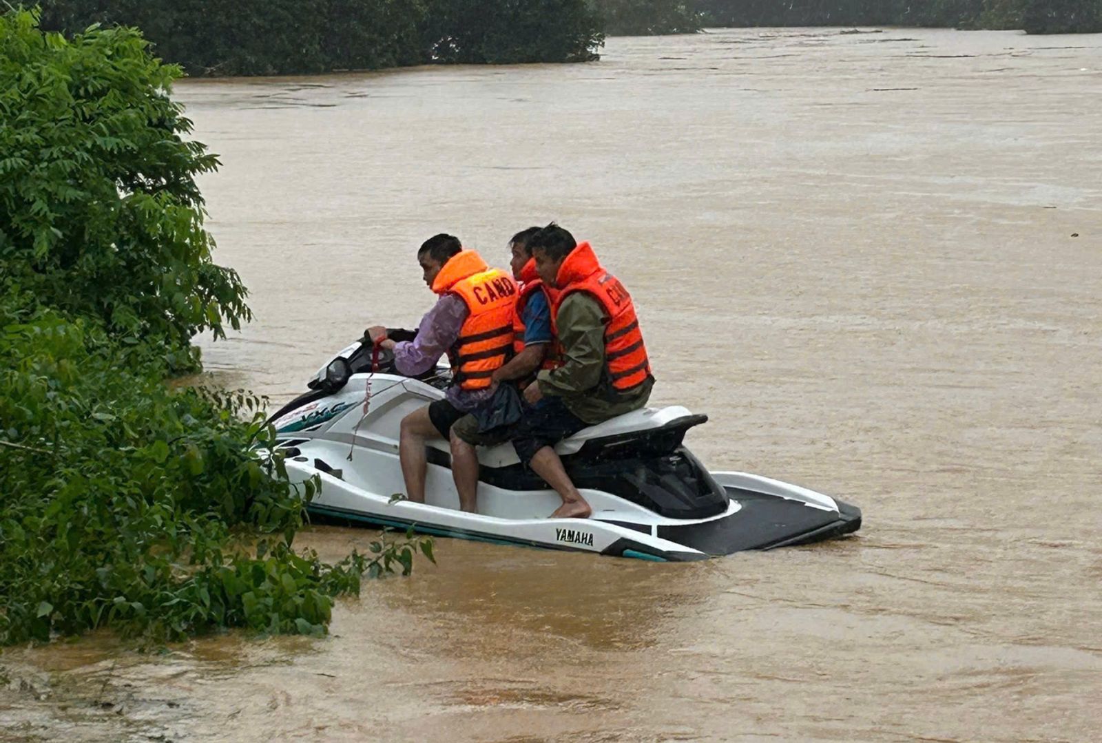 Chính quyền và lực lượng công an xã đã kịp thời sơ tán các hộ dân xã Hồi Xuân, tỉnh Thanh Hóa bị lũ nhấn chìm.
