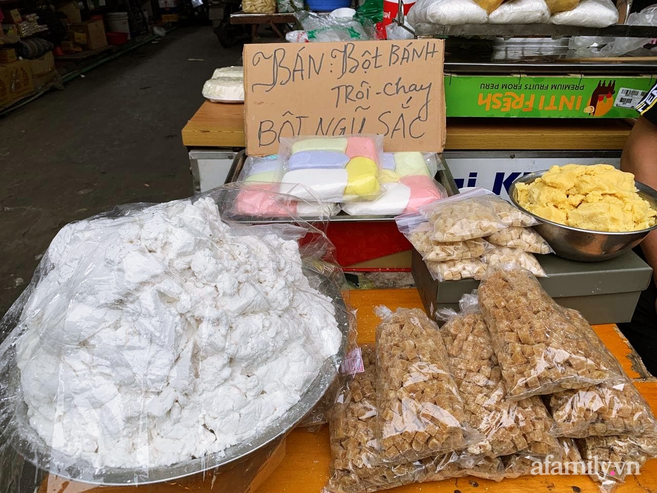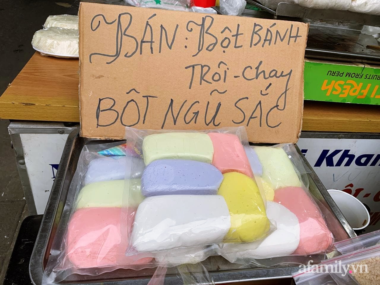 Ngoài loại bột trắng truyền thống có thêm bột bánh trôi bánh chay ngũ sắc.
