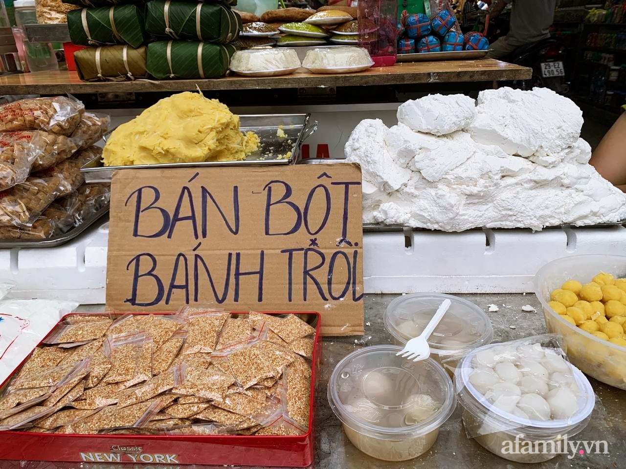 Chị em không có thời gian làm bột cũng có thể mua nhanh một hộp bột nếp tươi làm bánh trôi, bánh chay. Những gói bột này đã bao gồm đầy đủ nguyên liệu như: Bột, nhân đường, nhân đậu xanh, vừng, dừa nạo, bánh ngũ sắc đóng hộp… Bạn chỉ việc nặn, tạo hình theo ý thích và luộc chín nó là có thể dâng lên mâm cúng của gia đình.