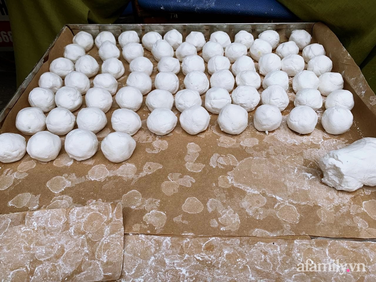 Tôi chỉ bán duy nhất 3 ngày thôi, bắt đầu từ ngày mùng 1 đến hết ngày mùng 3 tháng 3 âm lịch. Tổng lượng bột để làm bánh và bán ra trong 3 ngày lên đến 5 tạ. Trong đó, 3 tạ để mình tự nặn bánh bán, còn khoảng 2 tạ bột bán cho khách về tự làm. Vì lượng bánh bán ra quá nhiều nên không thể đếm được bao nhiêu đĩa, chỉ biết được mùa này làm hết 0,5 tấn bột bánh.