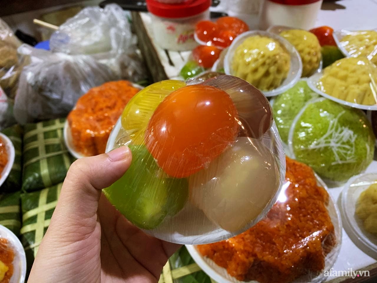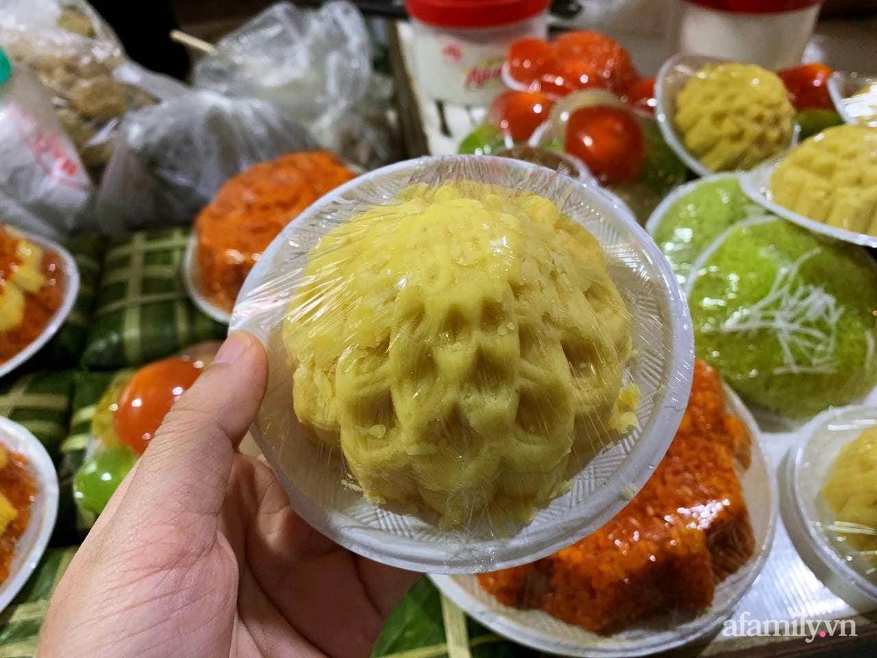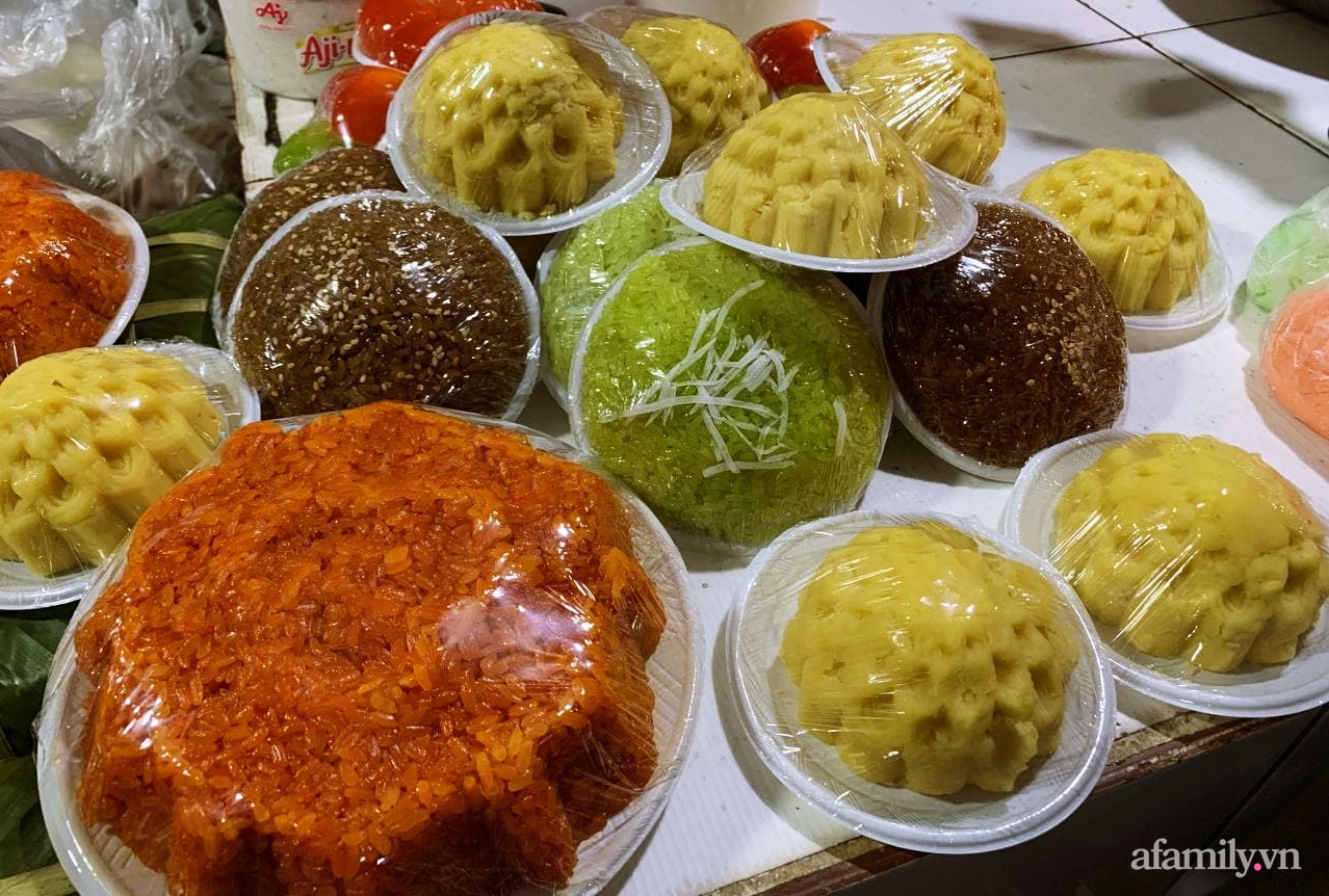 Ngoài bánh trôi, bánh chay các cửa hàng còn bán thêm bánh su suê ngũ sắc giá là 20.000 đồng/khay.