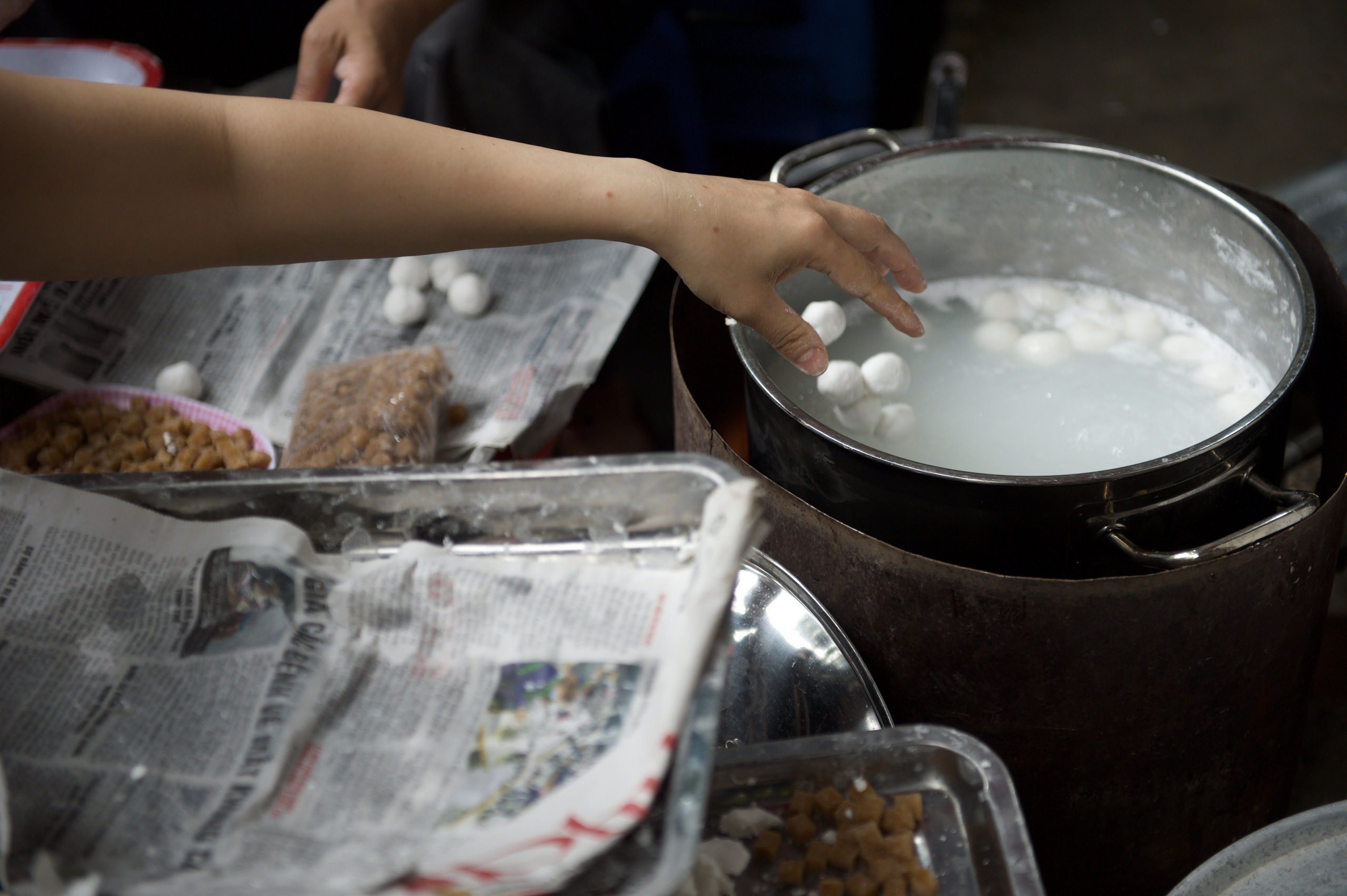 Tại các chợ dân sinh, ghi nhận khách tới mua không quá đông nhưng các hàng quán bán bánh trôi, bánh chay vẫn liên tục nặn để cung cấp hàng bởi đơn đặt online vẫn về đều.