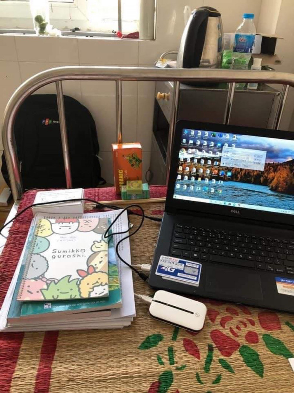 Các giáo viên dạy online ngay tại giường trong khu cách ly