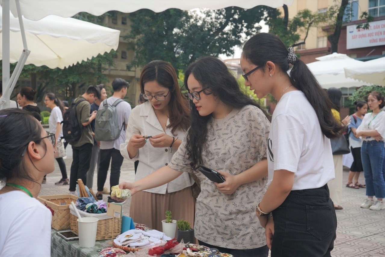 Gian hàng đồ tái chế, handmade thu hút sự quan tâm của các bạn sinh viên