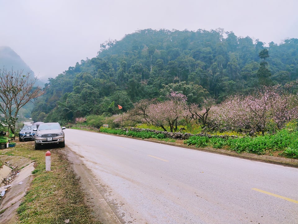 Đến du lịch Mộc Châu, chỉ cần chạm cửa ngõ huyện Vân Hồ, trên dọc con đường QL6 du khách dễ dàng ngắm hoa đào trên dọc con đường, trên các sườn đồi hai bên đường sắc hồng phủ kín.
