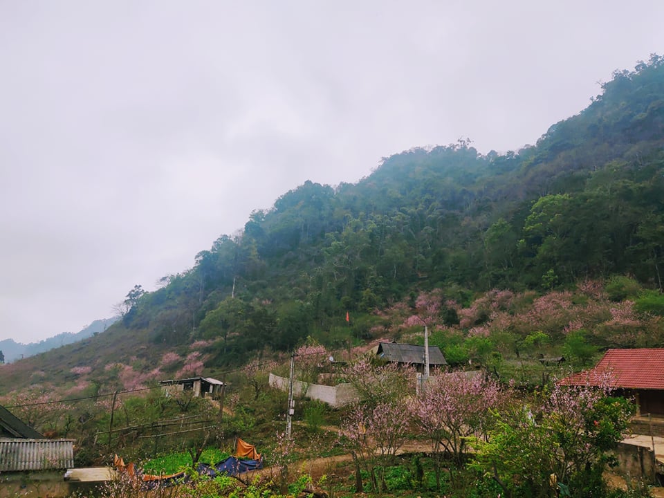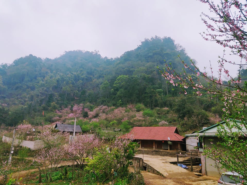 Từ đây trở đi đến Lóng Luông, 2 bên đường cứ thấp thoáng màu hồng, màu tím đỏ, màu hồng phai… lúc ngay trước mắt ở ven đường, lúc xa xa, mờ mờ trên những dãy núi bên kia thung lũng. Đến bản Co Lóng, Co Chàm, San Cài... ở gần xã Lóng Luông, nhìn trên đường xuống, cạnh ngôi nhà trệt nào cũng thấy bóng dáng đào, đi vào bản, nhà nào cũng có gốc đào đang chi chít hoa nở, đám trẻ nô đùa trong sân, đám lợn bản, gà đồi, lang thang dưới gốc.... tất cả gợi lên cảm giác mùa xuân Tây Bắc sao mà gần gụi, thân thương, mộc mạc đáng yêu đến vậy. Vào bản không mất vé, chỉ vài chiếc kẹo tặng bọn trẻ con dễ mến, thế là cả chủ, cả khách vui lắm rồi, tình cờ mà gặp một chàng trai đang thổi khèn dưới gốc đào nữa, thì du khách nào cũng “hết pin” điện thoại hoặc máy ảnh.