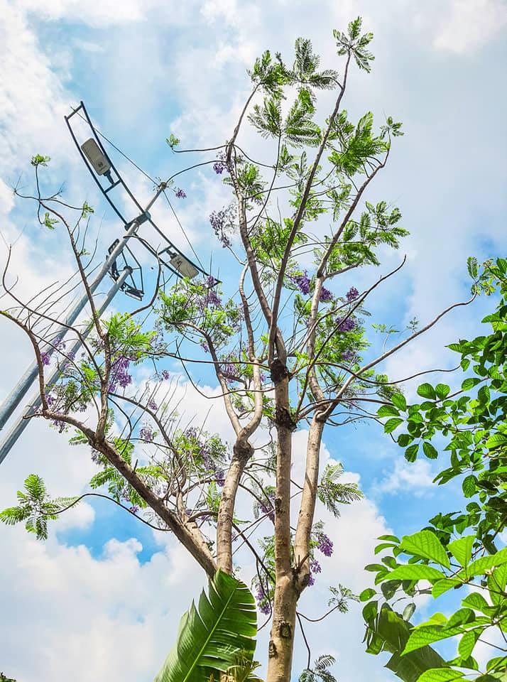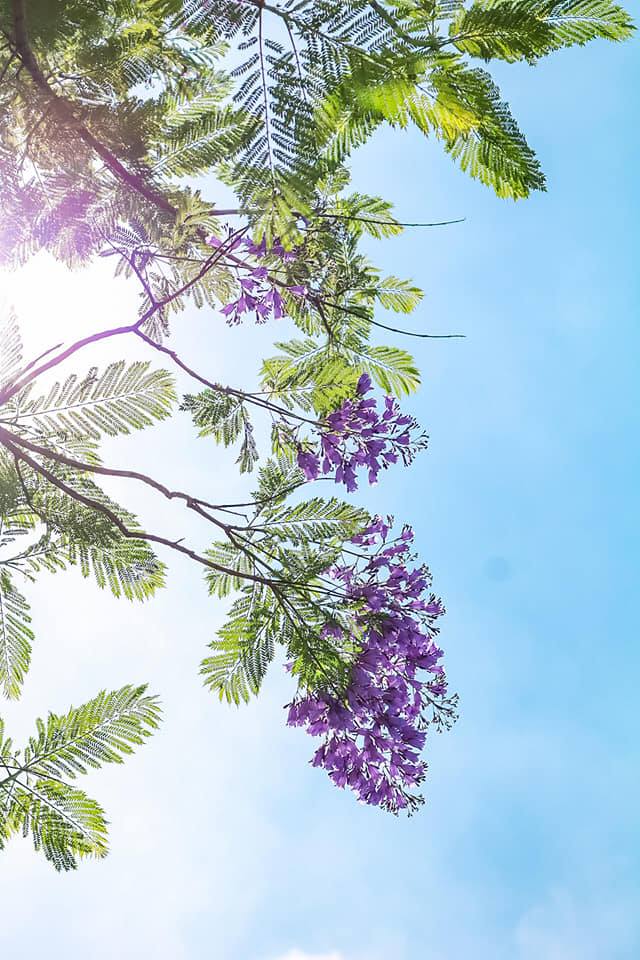 So với phượng vĩ đỏ, phượng tím nở sớm và lâu tàn, mùa hoa có thể kéo dài từ 4 đến 7 tháng.
