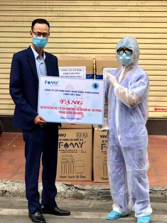 Với mong muốn, khát khao chia sẻ một phần khó khăn cùng các cán bộ y tế, các lực lượng làm nhiệm vụ tại bệnh viện, góp phần cùng thành phố sớm đẩy lùi, chiến thắng dịch Covid-19, đại diện lãnh đạo doanh nghiệp đã trao 300 bộ quần áo bảo hộ cho lực lượng làm nhiệm vụ tại đây. Những phần quà hỗ trợ tuy nhỏ, nhưng là tấm lòng, tình cảm của đông đảo cán bộ công nhân lao động Công ty Cổ phần Xuất nhập khẩu Thiên Dương Famy Việt Nam.